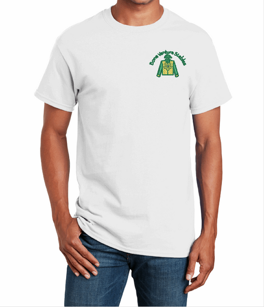 50/50 cotton/poly (Dark Heather, Safety Pink, Safety Green, Safety Orange, Heathered Cardinal, Heathered Indigo, Heathered Navy, Heathered Sapphire)